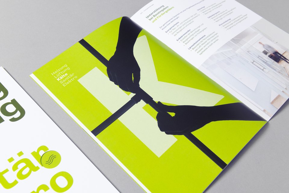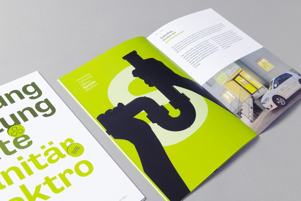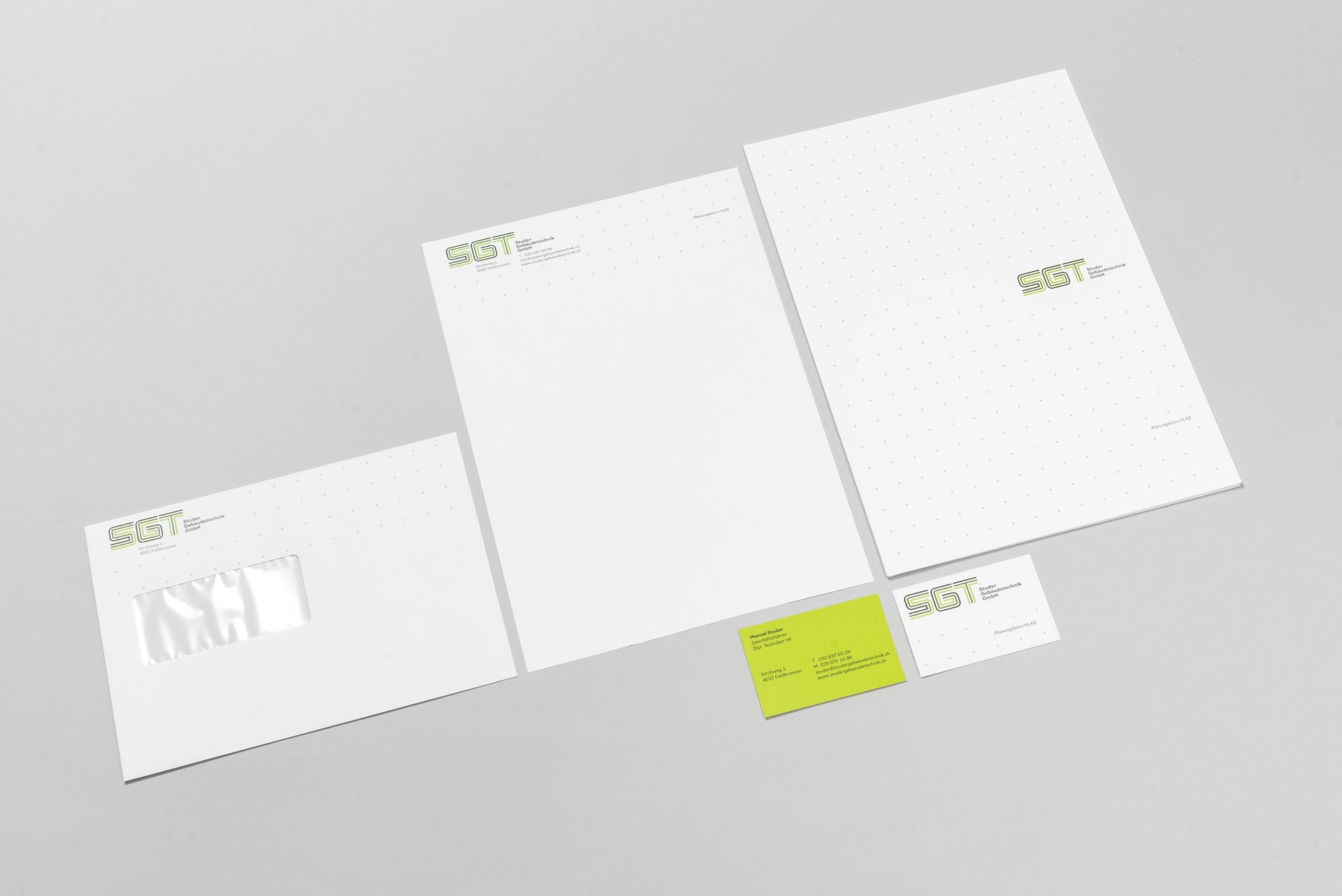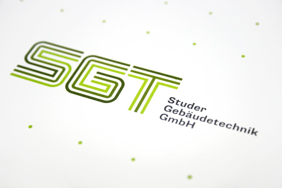 Gesamtheitlich denken – nachhaltig handeln: So lautet der Leitgedanke von Studer Gebäudetechnik. Seit der Firmengründung 2013 sind an die 600 Projekte schweizweit realisiert sowie drei neue Standorte gegründet worden. Das neue Logo wurde eigens für die Firma gezeichnet und basiert auf der Systematik von Leitungs- und Wegführungen. Das Thema der Nachhaltigkeit bringt die Farbwahl zum Ausdruck. Briefpapier, Visitenkarte, Kuverts, Offertmappe, Firmendokumentation und Schaufenstergestalung – alles aus einer Hand, einheitlich und stringent.